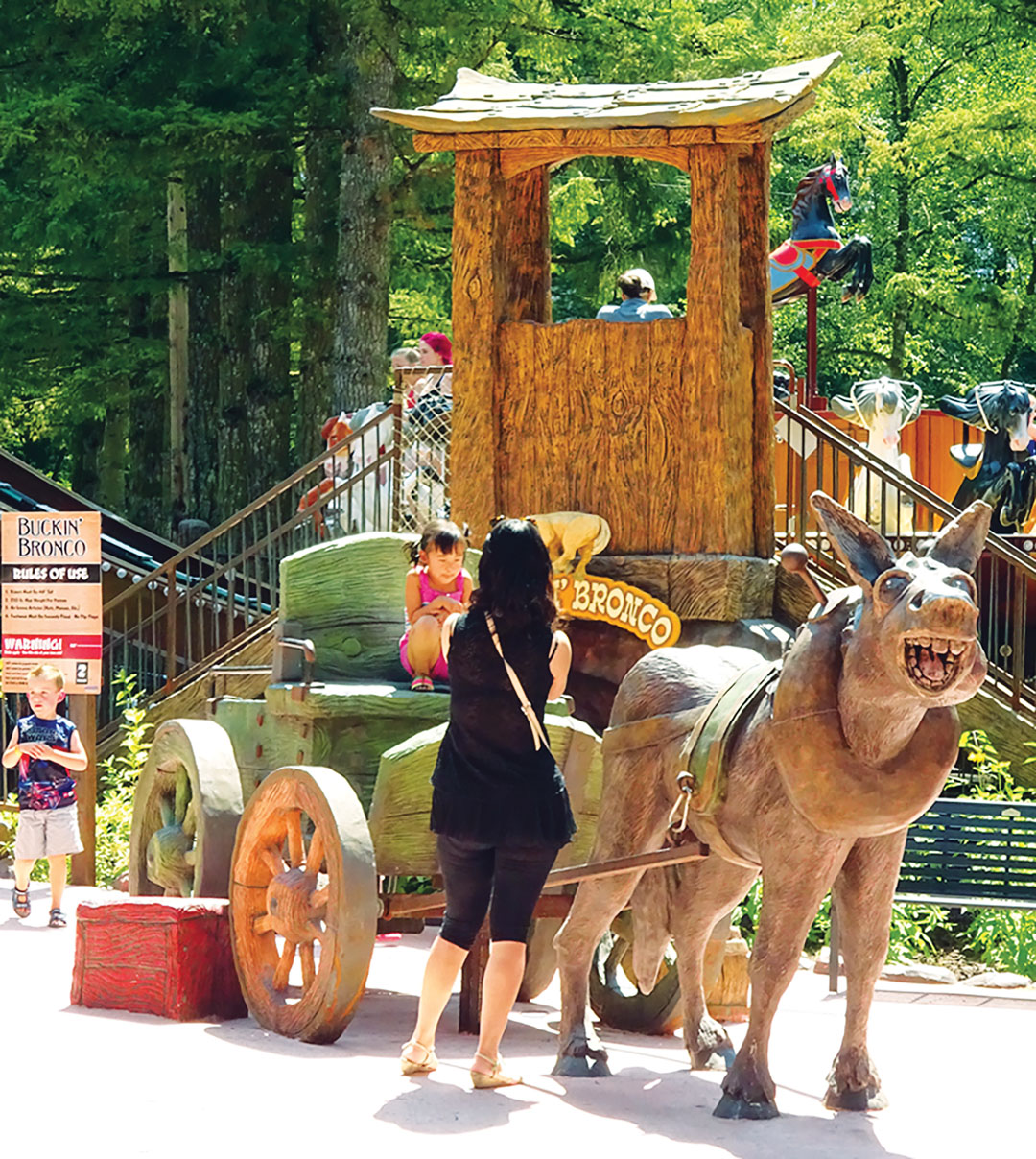 The horse-drawn wagon photo op is extremely popular. It can easily accommodate a large family with two or three on the seat, one on the horse and more in the back. We’ve positioned some wooden crates strategically to make it easier for people to climb aboard.