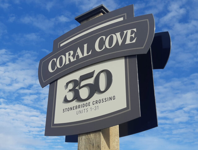 “For dimensional letters, we may have Gemini Inc. fabricate them or else we CNC-cut the letters and spray the finish. Laser-cutting has made it easy to add dimension and appeal to a sign. We often use Gemini’s laser-cut acrylic letters for this. They’re a great way to add dimension.”