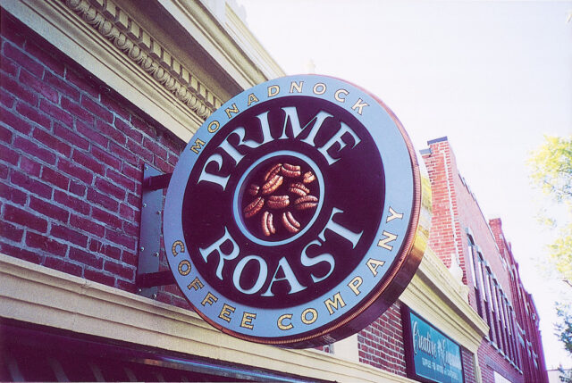 “The Prime Roast sign was the first really cool sign that I did in downtown Keene,” he says. “It was for a coffee shop that was opening on Main Street. I did a design that the owner, Judy Rogers, really liked, but she didn’t have the budget for it.