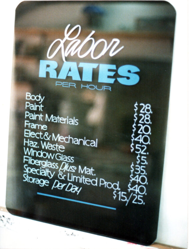 Sharing his shop space: The business there was good, and I remember working a lot of late nights. It turned out that the late Jon Harl [first featured in the January/February 1992 issue of SignCraft] lived just a few blocks away. He stopped by and introduced himself, telling me that he painted paper grocery banners from a shop in his garage and wanted to shift to commercial sign work. I asked if he’d like to share shop space. It worked for him and helped me with my overhead.