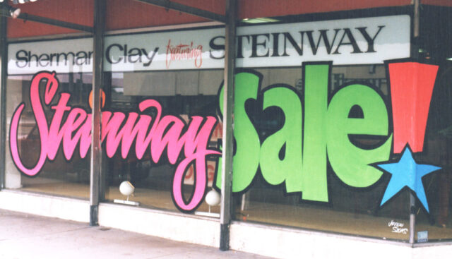 I wasn’t doing much sign painting by that point. It was mostly fabricated signs and letters that I ordered from wholesalers then installed. When an electrical sign shop offered me a job designing and selling electric signs, with the space to do my own jobs, I took it. I did that for about ten years.