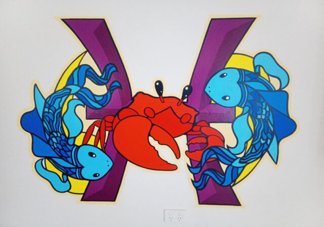 I found a cool crab to place in the center then added the large H-type Pisces symbol. I then took a photo of the drawing with my smartphone then projected it with a micro projector to enlarge the design onto the wall. My micro projector connects to my laptop, but now you can get them that connect to your smartphone. For all you closet hippies out there, this mural joined the two astrological symbols of Pisces and Cancer. My comfort in the afterlife is now guaranteed!
