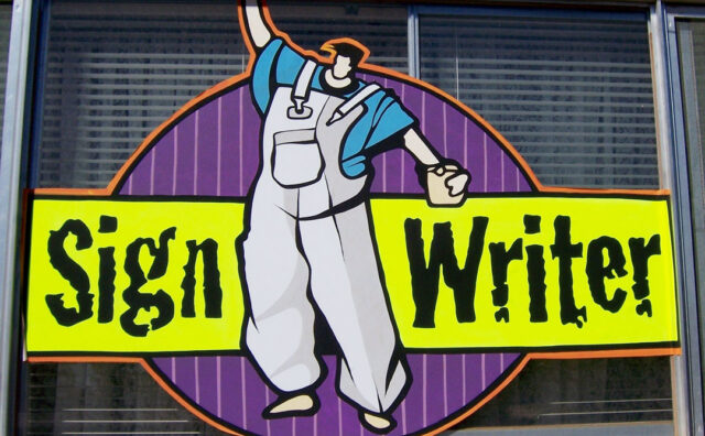 While I’m at it, this was hand painted many years ago and is another example of Crackhouse and Label used for the main copy. It’s all 1Shot enamel except the casual secondary which was computer cut vinyl. It was a Mike Stevens casual font from Sign DNA [available from SignCraft].