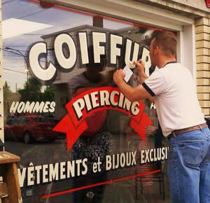 Pierre started painting signs and banners in the late 1980s. By the time he was first featured in SignCraft magazine 25 years ago, he had six sign painters on staff, mostly doing window graphics painted on Tyvek material for hundreds of fast food restaurants, car dealers and supermarkets across Canada.