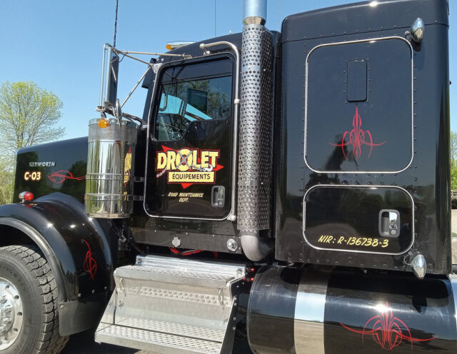 These truckers also buy a new truck for $300,000 [CDN], then they add $60,000 to $80,000 in options—just to make the truck look good. Today, trucks have an exhaust system like any other vehicle so those big chrome exhaust pipes sticking up on the back of the cab are fake. But truckers like the look and they spend $9,000 for them. So when you talk to them about $2,000 or $3,000 for lettering, it doesn’t seem like much.