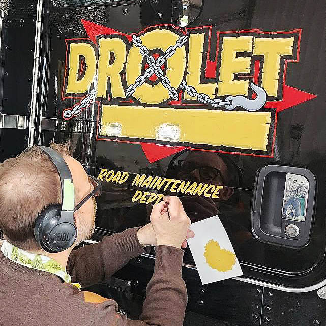 With trucks you have to work around what it gives you—the colors, any existing stripes, the brackets and panels. Sometimes the customer gives you all sorts of requirements and restrictions. But I can usually work around all that and give them something very readable.
