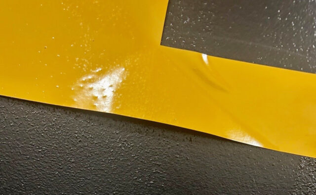 Shortly after a reader applied a cut vinyl logo on a customer’s office wall, the graphics began to peel off. The sign maker then learned that the area for the sign had been painted with a “stain and dirt resistant paint.” She explained to the customer that the paint was also resisting the adhesive.
