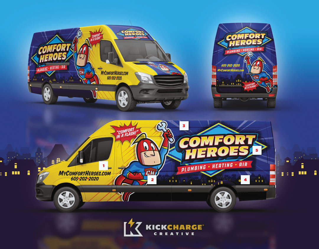 3. Our purple background here is bright, but still living behind the elements that are most important. Even the rays are subtle behind our badge, but leading the viewer to focus on the center of those rays, which is our badge.