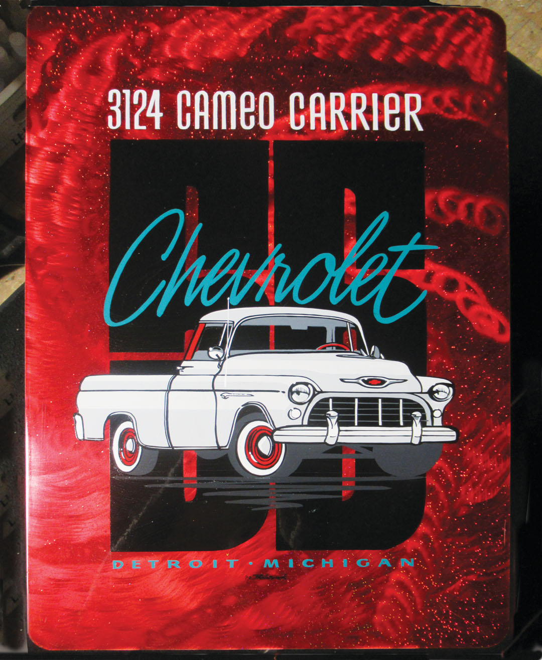 I always loved 1950s trucks, so I set out to reproduce one on a metal panel for someone with a keen interest in those same old trucks.