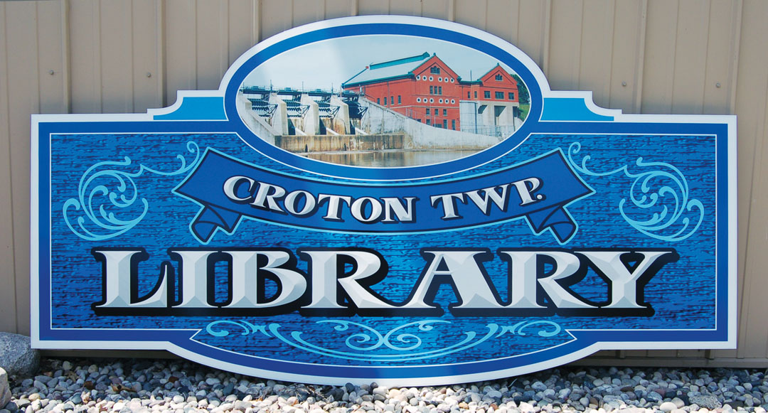 “This is an example of how we sometimes do a flat sign with a full-color laminated print with dimensional effect applied to lettering,” says Sandy.