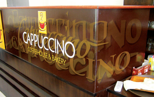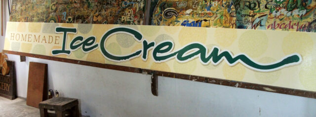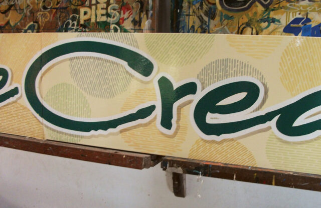 He does all his work by hand, so the effects that you see here were all done with a combination of paint and creativity. But no matter how it’s executed, an interesting background can bring a lot to a sign.