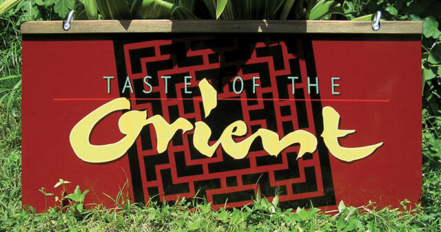 Rob Cooper works in a tourist area where there’s a lot of foot traffic and vehicles don’t fly by at interstate speeds. One of the ways he takes advantage of that is to add appeal to his signs by using cool background effects. Palm fronds, maps and textures often show up to add extra interest to the sign. It may be a detailed pattern, but other times it is a simple color panel.