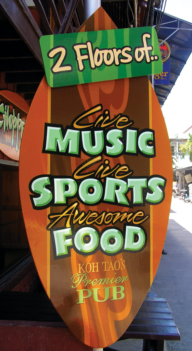 In Koh Tao, Thailand, the primary industry is tourism. People come to climb, dive, cycle and enjoy the natural beauty of the island. The local businesses, as you can tell, cater to that market, and signs are their essential marketing tools—just as they are for almost every small business worldwide.
