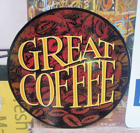 If the viewer just gives the sign a glance, they’ll get the essential message. The background effects add to the overall appeal, just like the colors, shape and letter choices. It’s not something he uses on every sign, of course, but it can be very effective.