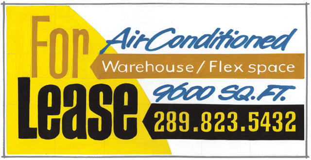 Our readers’ eyes will flow through this design from the top left downward, hitting our blue “Air Conditioned” then on to “Lease” very quickly. Even though there’s plenty of information on the sign, using contrasting type and colors creates a sign that is much easier to read.