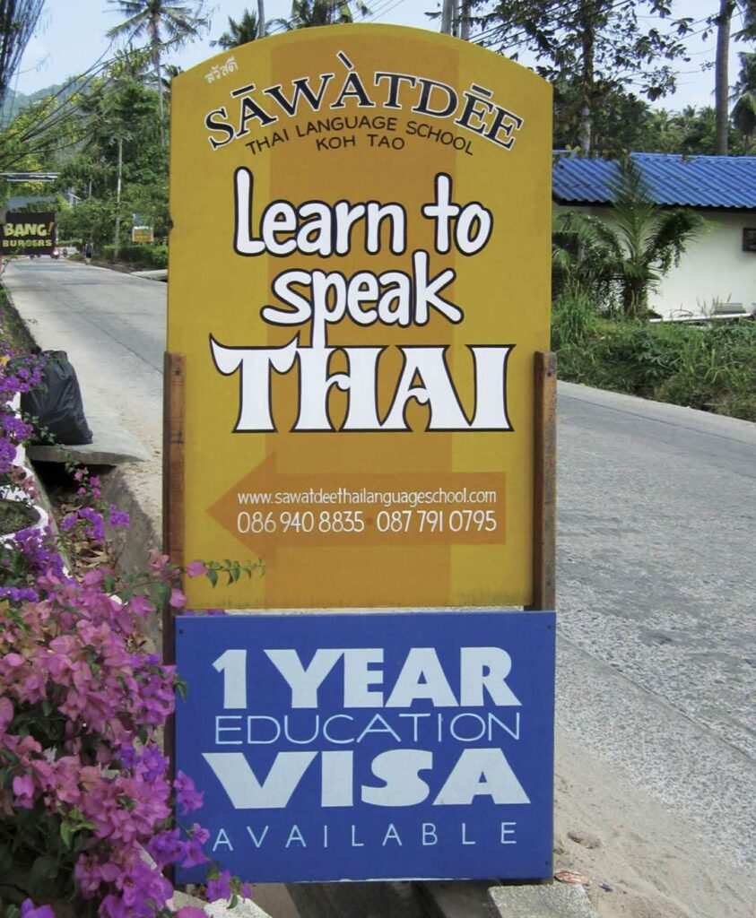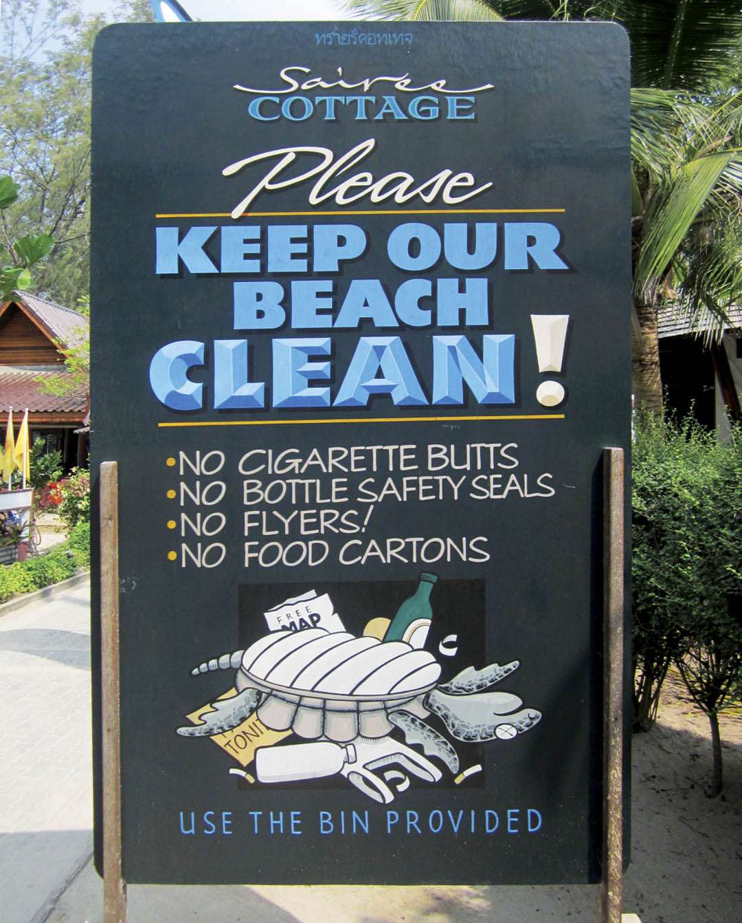 “For a sign to do what it is intended to do,” says Rob, who lives and works on the island of Koh Tao, Thailand, “it must be readable. If you squint at the sign and cannot easily read the essential message, the sign is not working.”