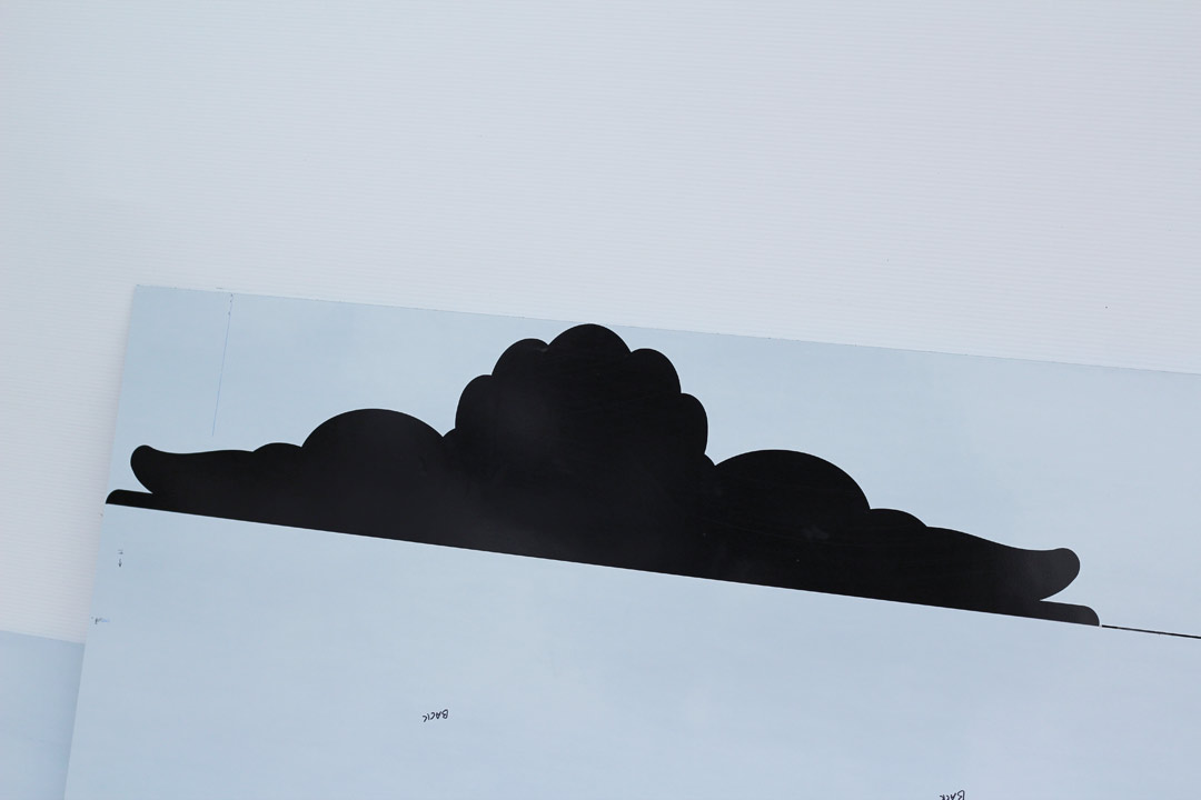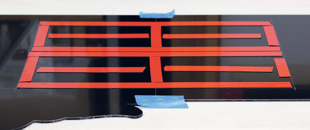 Since the sign was 135 inches long, two panels would need to be joined. A word to the wise: do not join the factory edges together (the 48-in. long ends). The ends seem to have slight irregularities that can make the seam more obvious. I cut a bit off and then butted the freshly cut pieces end to end. I was careful to plan the splices to fall between letters.