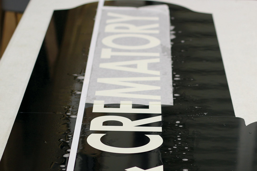 With all that in mind, I designed the new sign to cover the words “Funeral Home” and the address numbers.