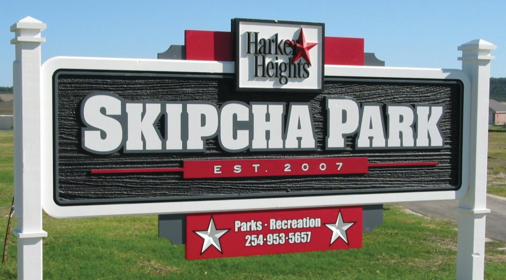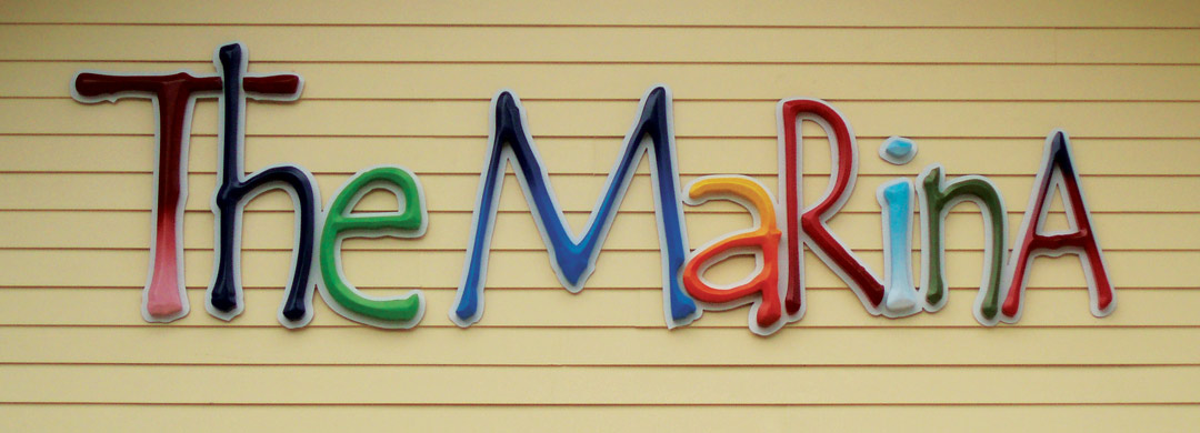 Bob Stephens, Skywatch Signs, Zephyrhills, Florida: MultiCam CNC router with CadLink ProfileLab and Vectric Aspire software. This sign is a direct print on PVC, with V-carved letters on the larger copy, routed through a mask then painted.