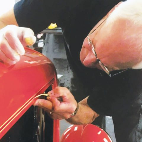 Back in 1997, John Hannukaine literally wrote the book on pinstriping with his Pinstriping and Vehicle Graphics, published by SignCraft. In 120 pages he outlined his approach to the art of fine lines, graphics and pictorials on vehicles, explaining the process step-bystep for those who wanted to try their hand at it. It inspired thousands of sign painters and pinstripers, and SignCraft still hears frequently from sign people who tell how John’s book has influenced their work. The book is still in print.